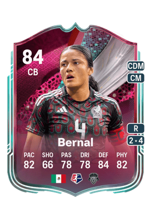 The Festival of Football: Captains Rebeca Bernal brings solid pace (82 PAC) to the pitch with reliable dribbling (78 DRI). while 4★ weak foot ensures consistency on both feet. This version offers +10 OVR upgrade over the base 74 rated card.